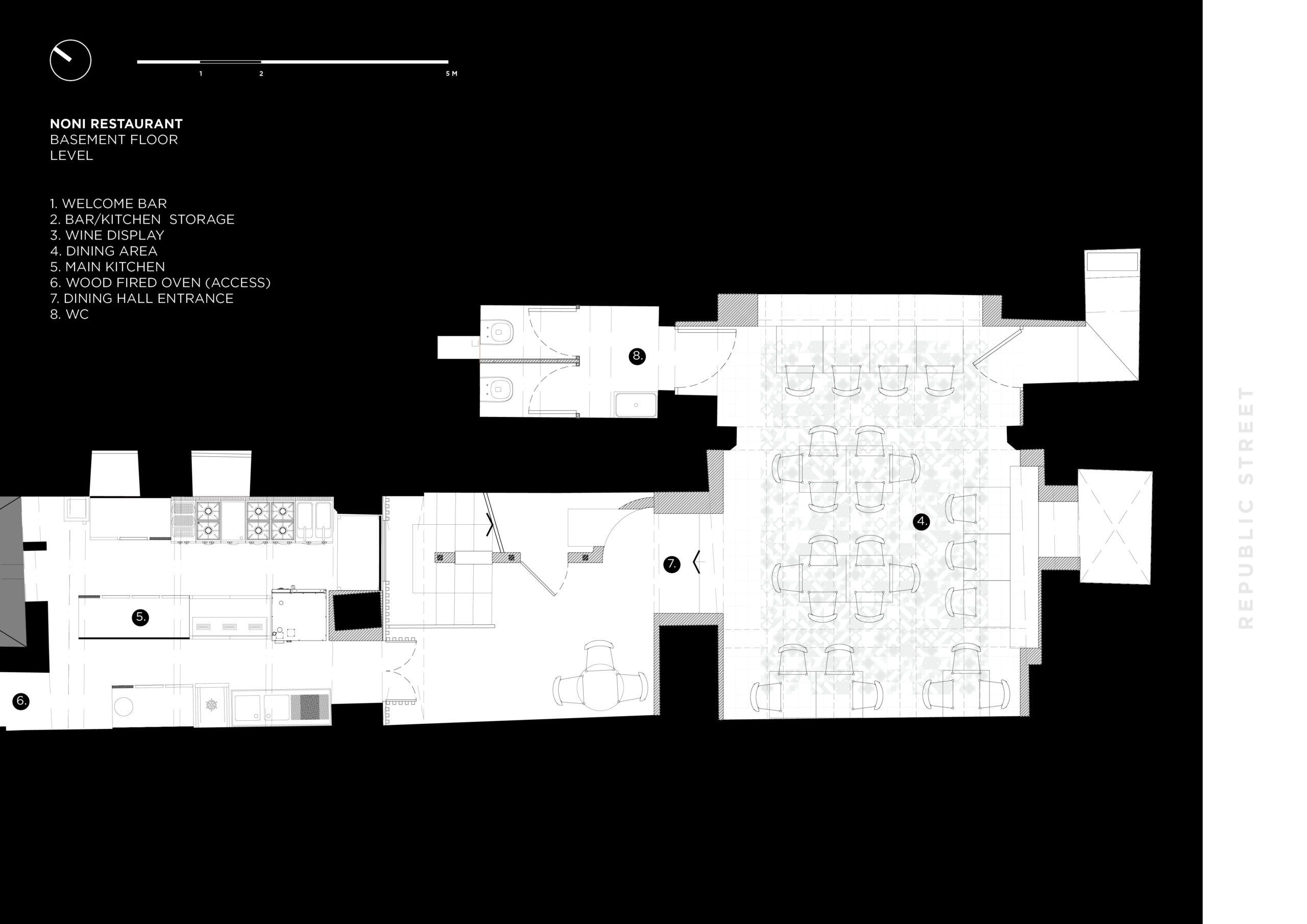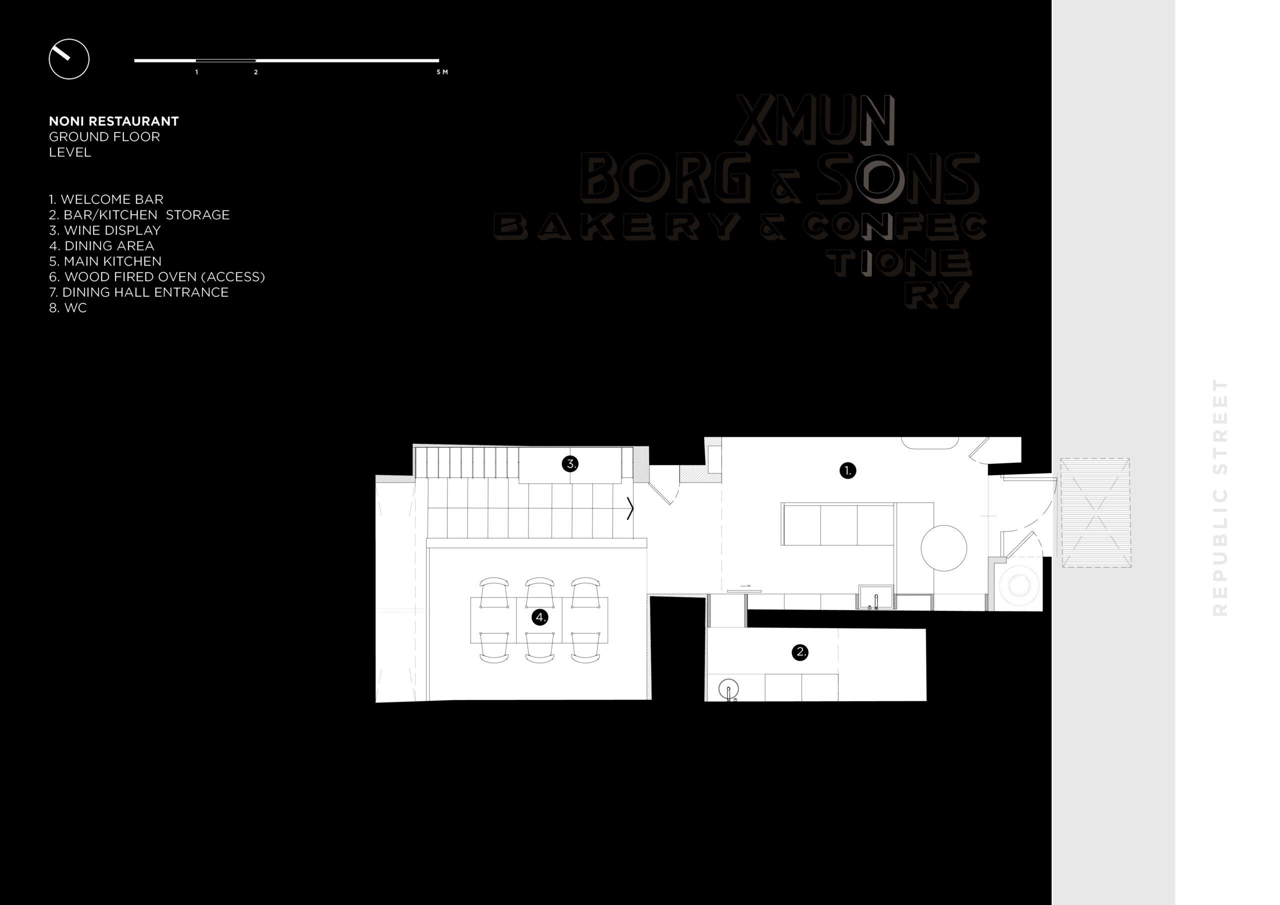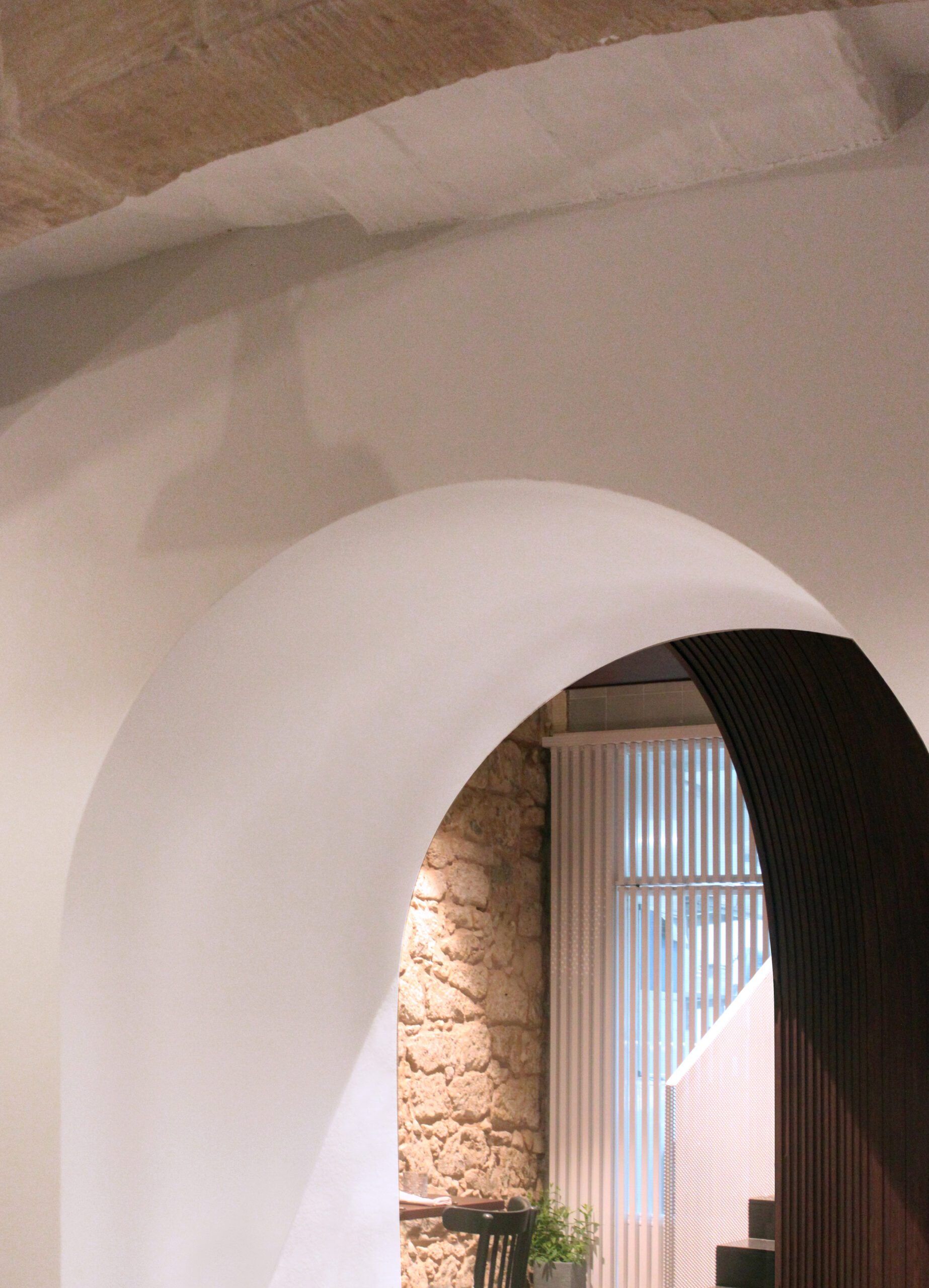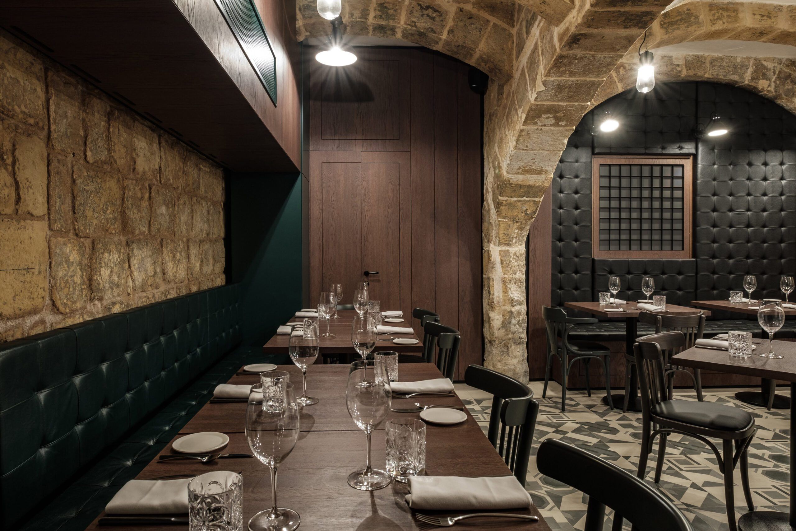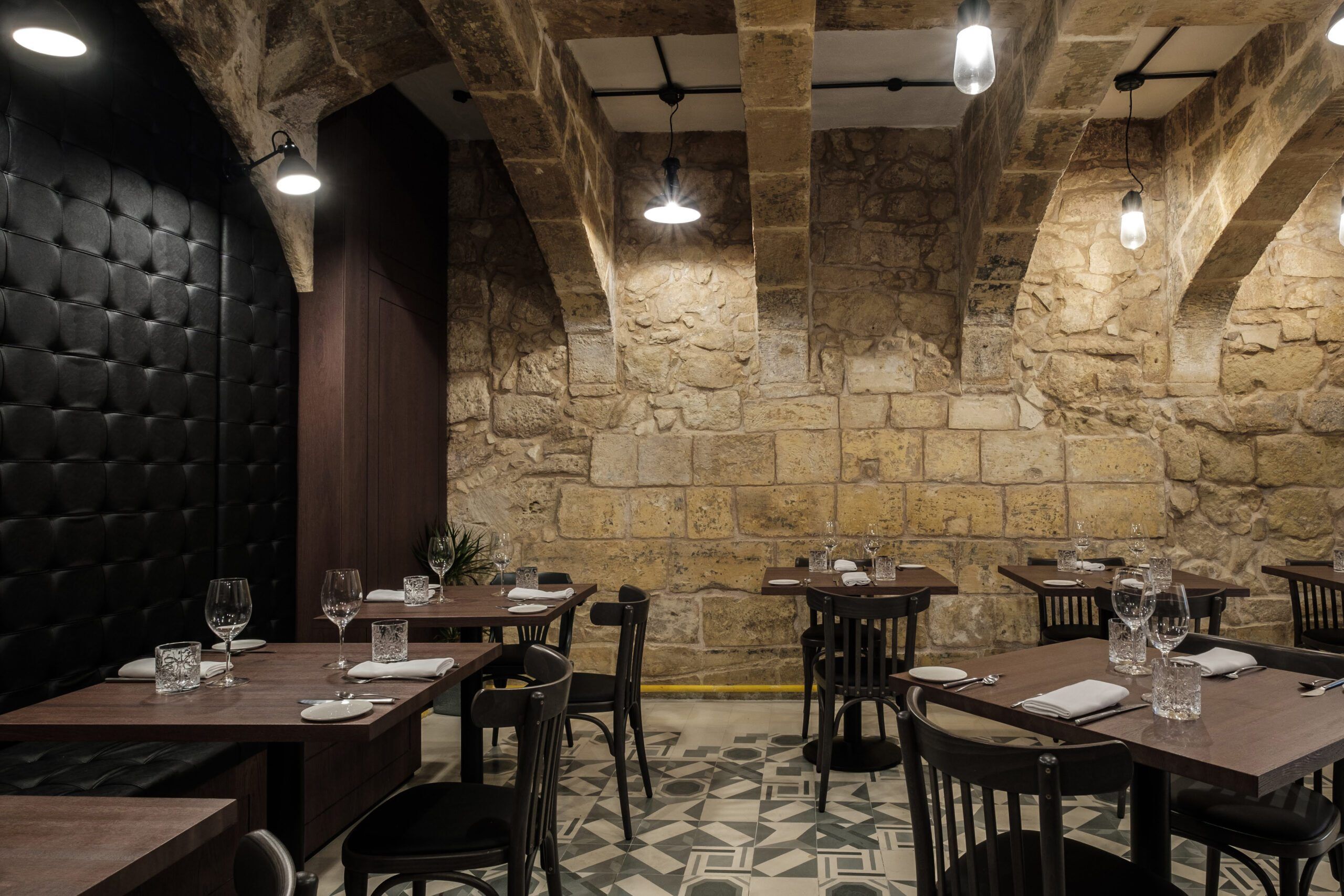 At 211 Republic Street, we honoured the building’s history as Xmun Borg’s Bakery and Confectionary, later a jazz bar. We balanced the modern eatery’s industrial aesthetic with nods to its softer confectionary and music hall past. This influenced our design choices, from restoring the facade sign to adding colours on Maltese floor tiles. We improved dining room access with a custom arching timber furniture piece, making the passage a restaurant interior highlight.